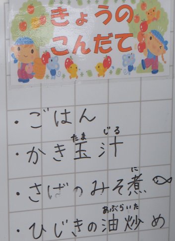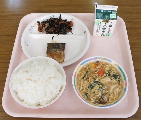 今日のお昼は和食メニュー!かき玉汁はとろっとしたとろみがついていて、まるであんかけのような感じです。卵がたっぷり使われていて、これだけでもおかずになりそうです。